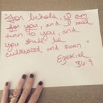 I’ve loved some time in Ezekiel! This book is full of God’s plan to cause exterior law to become interior truth in His Own. Why did God give the law if He knew people couldn’t keep it? Perhaps His great mercy was showing us our religious inability -a drought of desire for our Creator. Only new life (not dead law) could draw us to Him! BEHOLD-the glorious verb of announcement -is a word meant to startle us. It precedes power. “BEHOLD, I AM FOR YOU” He knew He would offer a spiritual exchange program. We hand Him our granite ritual-trusting ways & He gives us soft hearts that beat because His divine Blood flows through them! #GreatExchange #BEHOLD #DeathToLife #Ezekiel #HeisFORyou